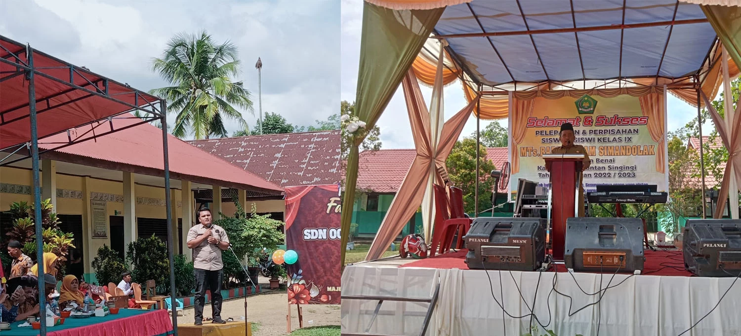 Kepala Desa hadiri Perpisahan MTS SimandolakBulan Mei adalah bulan yang semarak dengan acara-acara seremonial. Tentunya tak lain adalah perhelatan menjelang menamatkan sekolah. Mulai tingkat SLTA, SLTP dan SD bahkan Taman Kanak-Kanak dan Paud pun tak ketinggalan dengan momen-momen akhir tahun ...